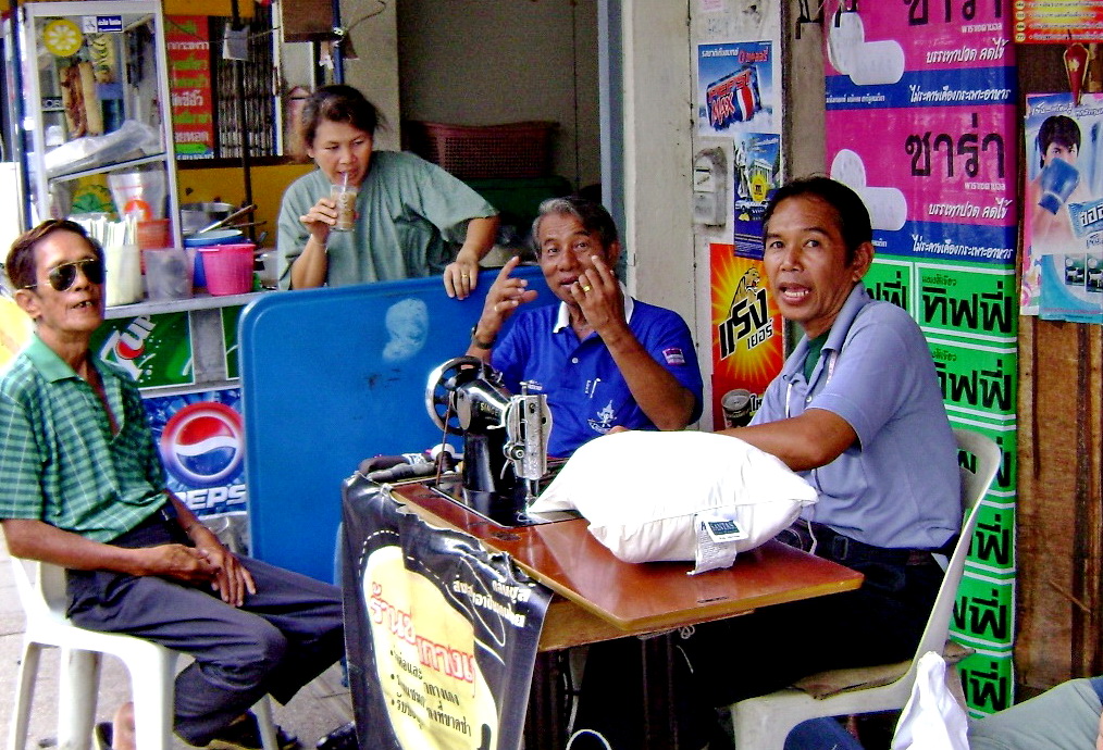 При ближайшем рассмотрении Накхонрадчасима оказывается городом уличных портных и «золотых» магазинчиков. Можно подумать (пардон за заимствование!), что жители его только тем и занимаются, что украшают себя золотом и перешивают старые вещи. По швейным машинкам, за которыми сидят в основном солидные мужики, тут можно изучать историю швейной техники.