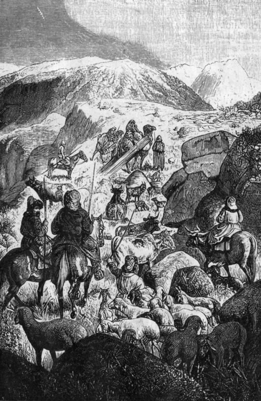 «В 1889 году в эти горы пришло из Алтая около ста юрт китайских киргизов вследствие стеснения пастбищ на их родине. Здесь же в горах они нашли хорошие корма и очень удобные зимовки, свободные зимою, потому что все местные жители на зиму уходят со скотом в низкие, более теплые места. Киргизы занимаются исключительно скотоводством и охотою», – это свидетельство В. И. Роборовского, ученика Н. М. Пржевальского (из его книги «Путешествие в Восточный Тянь-Шань и Нань-Шань»).