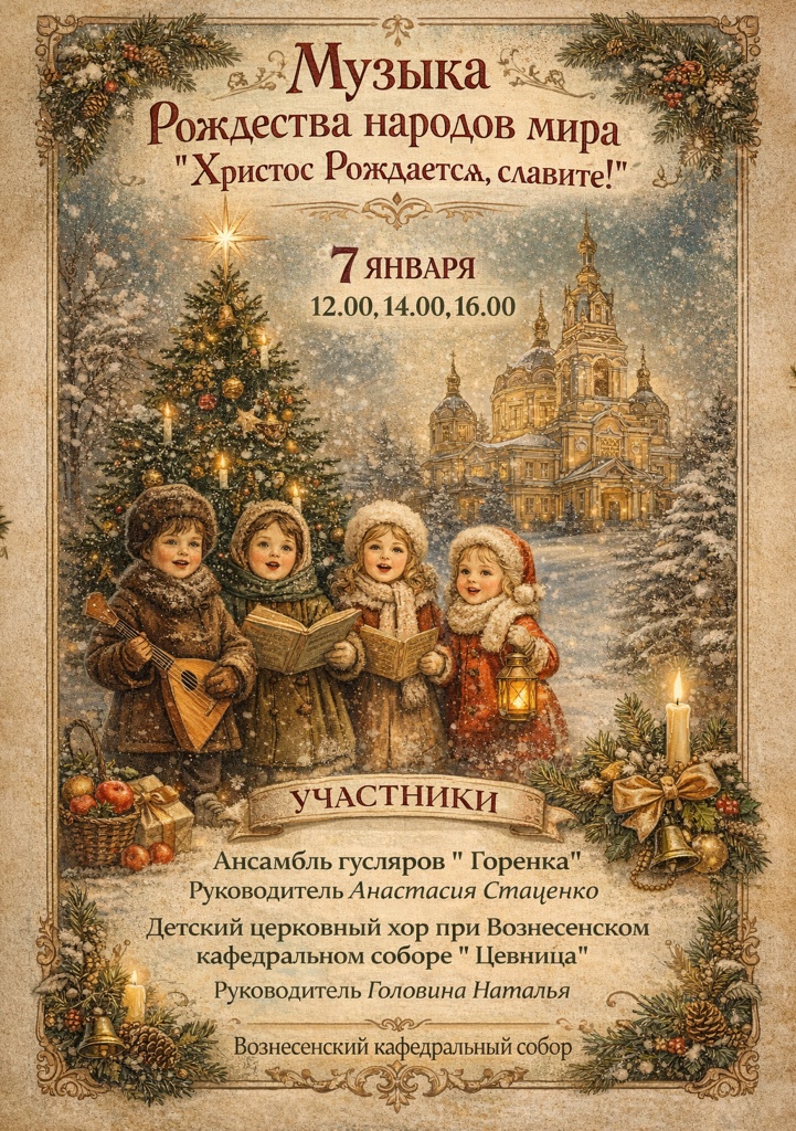 7 января 2026 года Вознесенский кафедральный собор приглашает горожан и гостей города на концерты, посвященные Рождеству Христову.