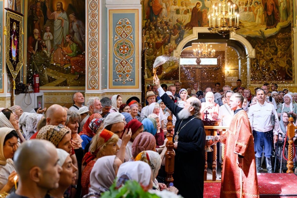 Крестный ход прибыл в Свято-Никольский собор. Владыка вошел в алтарь и на святом престоле поставил ковчег со святыней. Началась божественная литургия, после которой Его Преосвященство, подняв святые мощи, крестным ходом проследовал вокруг церкви на соборную площадь, где при огромном стечении народа совершил молебен с водоосвящением, прочитал акафист и затем со святыней возвратился в церковь.