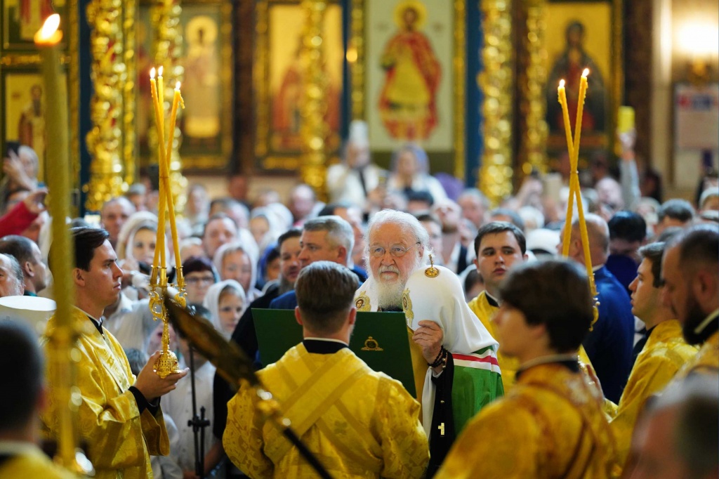 Накануне предстоятель Русской Православной Церкви возглавил богослужение в главном храме Казахстана – Успенском соборе Астаны.