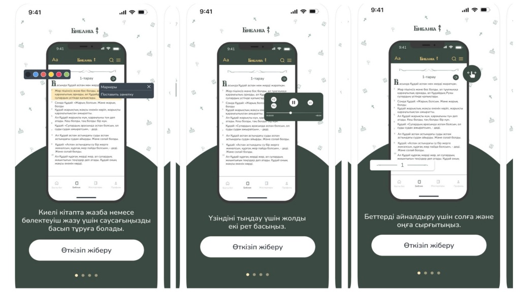 Уникальный Цифровой вариант священного писания Библии на казахском и русском языках. Впервые новозаветные тексты были переведены на государственный язык Казахстана.