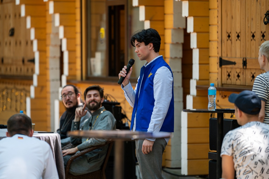 В начале разговора отец Георгий поднял тему места милосердия и помощи людям в православной религии. По его словам, добрые дела не стоят в Православии на первом месте, как, например, в протестантских течениях. Для православного человека важнее личное спасение, но оно, конечно, невозможно без помощи нуждающимся.