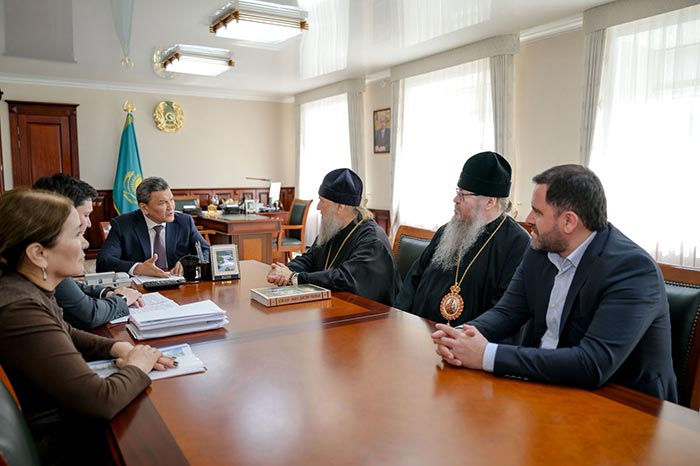 В Петропавловске состоялась встреча главы Православной Церкви Казахстана митрополита Александра с акимом Северо-Казахстанской области Гауезом Нурмухамбетовым.