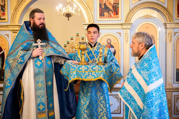 Богослужение возглавил секретарь Костанайской епархии иеромонах Геннадий (Бурдюжа). В завершение богослужения было совершено славление перед Казанским образом Божией Матери, особо почитаемым жителями поселка Асенкритовка.