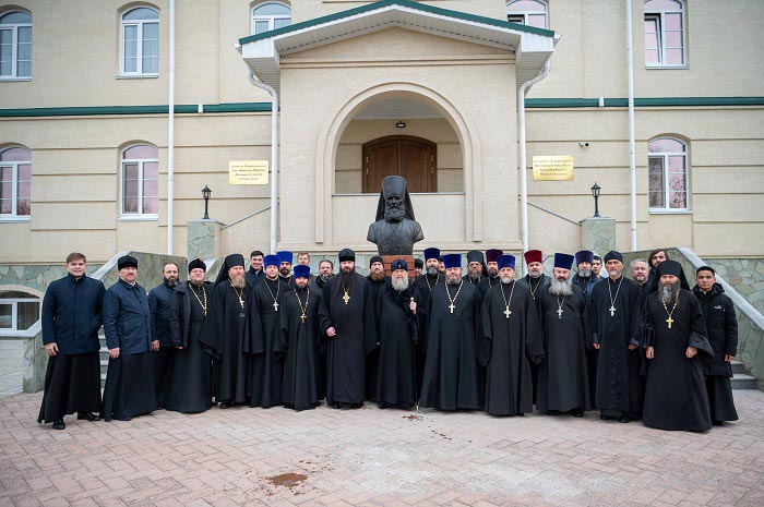Митрополит Александр окропил монумент святой водой и обратился к собравшимся со словом о жизни и трудах первого Кустанайского архипастыря. Духовенство и верующие пропели святителю «Вечную память».
