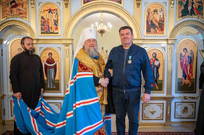 Во внимание к трудам по строительству и благоукрашению храма архипастырь удостоил благотворителей высоких наград Казахстанского Митрополичьего округа. В дар Покровскому храму владыка митрополит передал святые иконы – «Христос – Великий Архиерей» и Феодоровский образ Царицы Небесной.