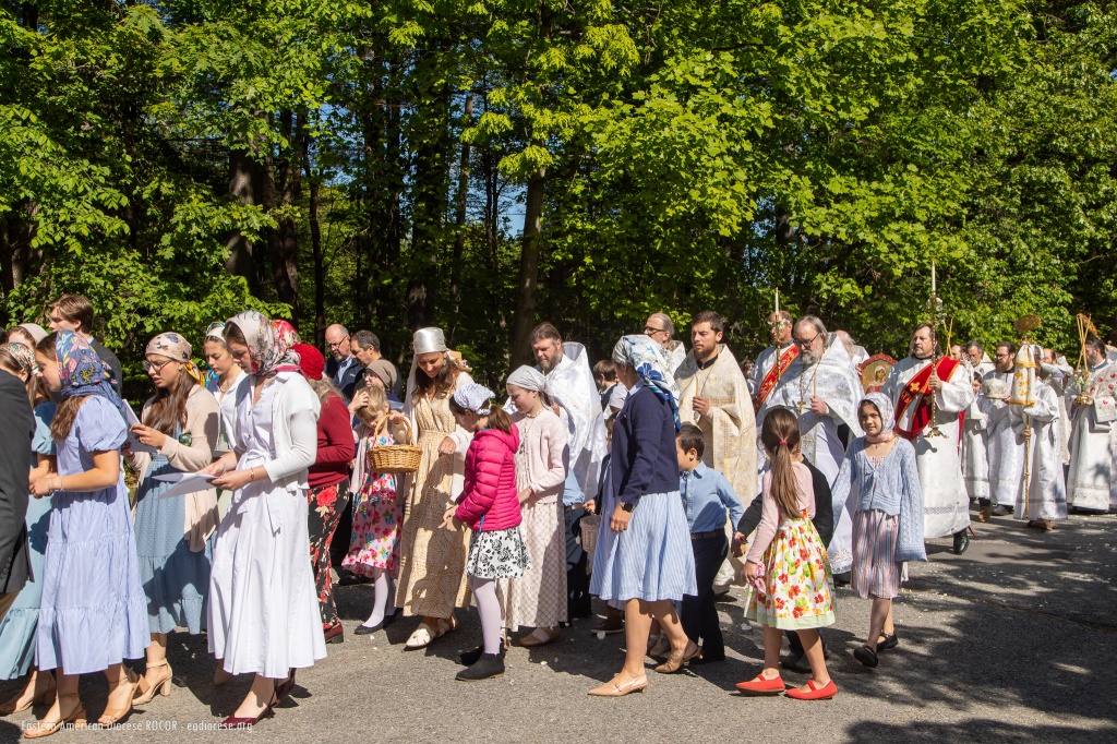 «Храм был заполнен до отказа, в основном семьями с большим количеством маленьких детей. Те, кто не смог поместиться в церкви, смогли помолиться на улице и послушать богослужение с помощью громкоговорителей», – отмечают в Восточно-Американской епархии.