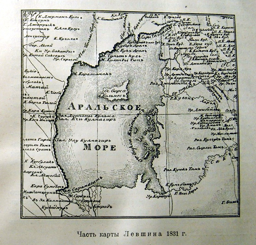 Даже на дотошно исполненной карте Левшина центр озера занимает один-единственный остров Барсакельмес, о котором знали ходившие туда по льду казахи.