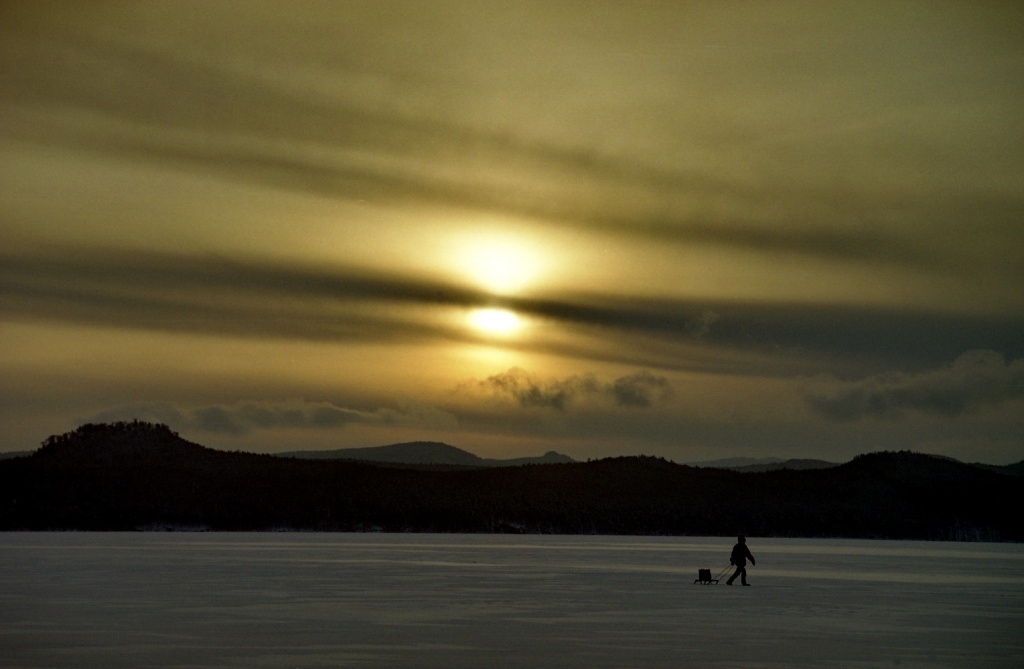 Волшебство так и витает вокруг в такое время. Ну, когда еще можно так вот, запросто, подойти к Сфинксу – Жумбактасу, и погладить его гранитные бока? Или улечься на отполированную ветрами ледяную поверхность застывшего Чебачьего озера и, заглянув вглубь, увидать, как в темной бездне ворочается сонная рыба? А выйти первым на засыпанную свежим снегом «Байкальскую дорогу» и почувствовать себя оторванным от всего человечества?