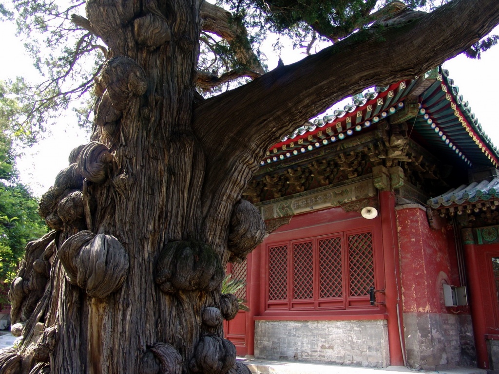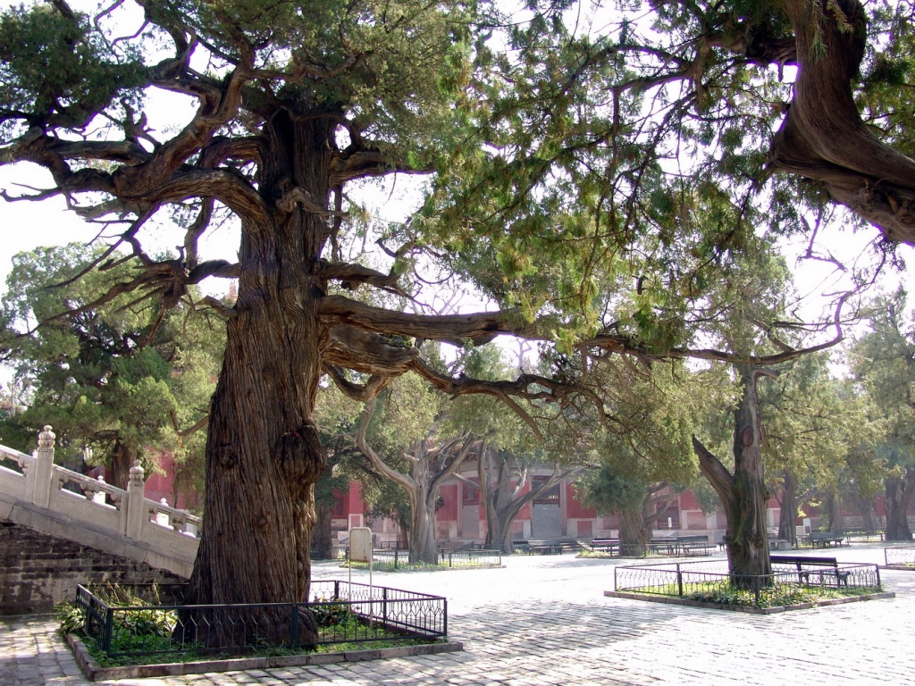 Если вас когда-то занесет в Пекин, и вы не поленитесь побывать в Кунмяо – обратите внимание на эти кипарисы во втором дворе храма. Здесь есть патриархи, которым от роду уже семь веков, и они помнят еще закат империи монголов. Некоторые из них уже мертвы и остались стоять в виде посеребренных временем скелетов, другие – мертвы наполовину, третьи – еще и не думают умирать. Но все они сохраняются, вызывая какое-то необыкновенное благоговение, почти религиозное чувство. Деревья-патриархи, охраняющие покой патриарха человеческой мудрости.