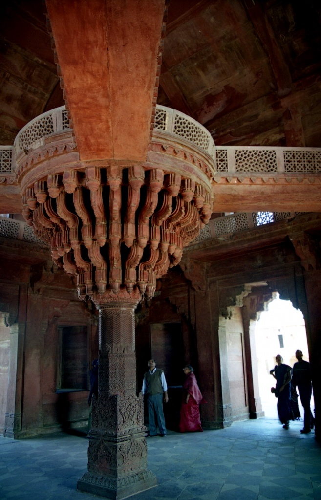 Очень любопытное сооружение возвышается в дальнем конце главной площади. В изящном двухэтажном павильончике когда-то заседал верховный совет при Акбаре – Диван-и-кхас. Сам шах восседал в центре – на круглой площадке, расположенной поверх высокого каменного столба, а советники и эксперты располагались на галерее, опоясывающей помещение вдоль стен. Отсюда, сверху, они выслушивали мнения и просьбы просителей, предстоятелей, экспертов, делегатов, ходоков, которых запускали снаружи.