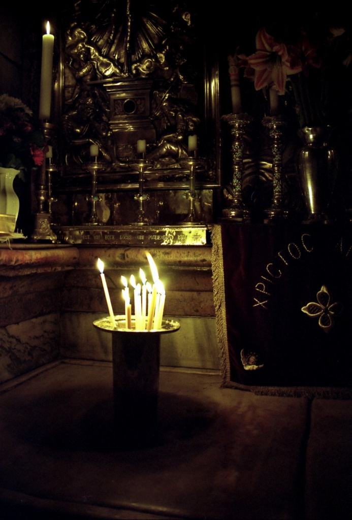 Одновременно тут, у сточенной лобзаниями миллионов мраморной плиты, укрывшей дикий камень на которой лежало Его запеленатое тело, могут уместиться лишь три-четыре человека. И то – лишь гуманной комплекции. Впрочем, в этом месте напрочь теряется ощущение замкнутого пространства. И само время теряет свой нрав – неукротимого и всепожирающего монстра.