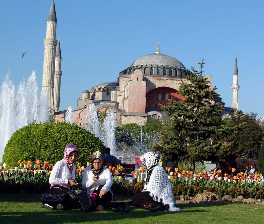 Неслучайно центром всего действа, называемого Фестивалем тюльпанов, считается древний Ат-Мейдан – античный Ипподром, разные части которого по двум архитектурно-историческим доминантам – византийскому храму Святой Софии и османской мечети Султан-Ахмед-джами – носят название Софийской площади и квартала Султанахмед.