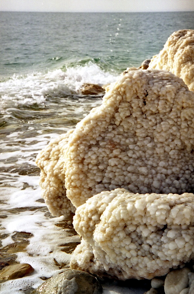 Все прибрежные камни Мертвого моря покрыты, словно льдом, толстой соляной коркой. И опять включается «историческая» память, воскрешающая образы того «соляного столба», в который была обращена несчастная жена праведника Лота, павшая жертвой естественного женского любопытства. Это когда Создатель по полной карал погрязших в «содомских грехах» жителей нечестивого городка Содома, а заодно и близлежащей Гоморры.