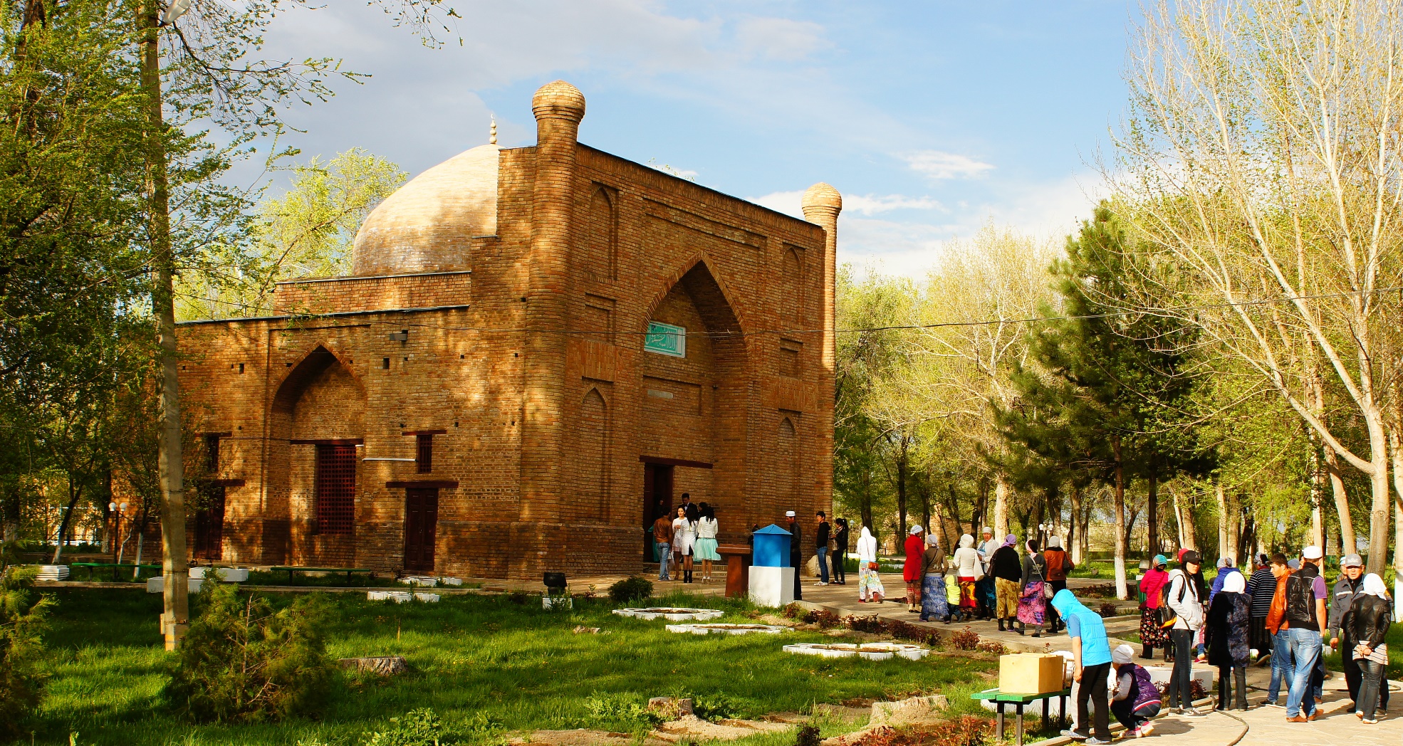 Несмотря на выхолощенный архитектурными чистками облик, мазар Карахана сыграл ключевую роль в истории Тараза-Аулие-Аты-Джамбула-Тараза (жаждущие абсолютной истины могут втиснуть между Таразом и Аулие-Атой – Наманган-коче, а между Аулие-Атой и Джамбулом еще и Мирзояна, чьим именем город назывался с 1936 по 1938 годы). Так вот, в годы забвения городской жизни (напомню, что между славным Таразом и Аулие-Атой лежали века руин), именно мазар Карахана был тем стержнем, вокруг которого теплилась тутошняя история. Недаром именно на него начали нанизываться кварталы нового города, вставшего позже над руинами прежнего.