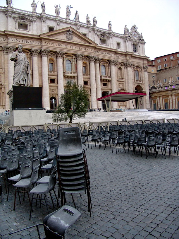 По преданию именно тут, где ныне высится прославленный собор, был распят и апостол Петр, принесший из своей Палестины Благую Весть в столицу тогдашнего мира. Это уже значительно позже Рим стал ассоциироваться с всехристианским центром, претендующим чуть ли не на статус земного филиала Небесного царствия. И пап-понтификов вовсе не сразу стали представлять наместниками Бога среди людей.