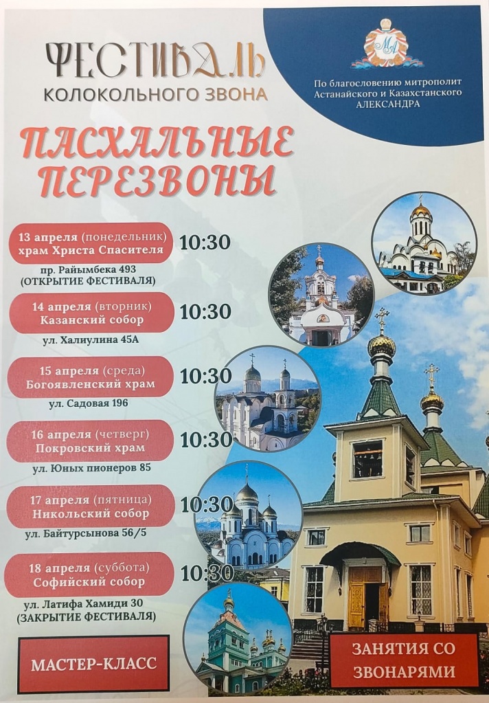 Пятница, 17 апреля – Никольский собор (ул. Байтурсынова, 56/5);