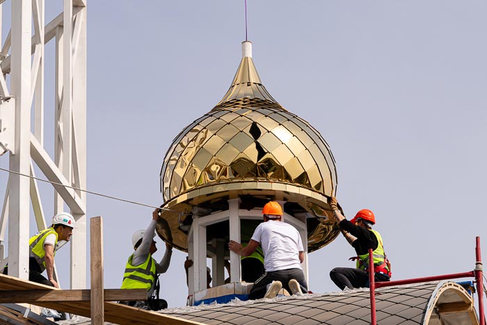 Митрополит Астанайский и Казахстанский Александр освятил кресты и купола строящегося храма во имя святых бессребреников Космы и Дамиана Римских. Чин освящения совершен 4 апреля, в праздник Воскрешения Христом праведного Лазаря.