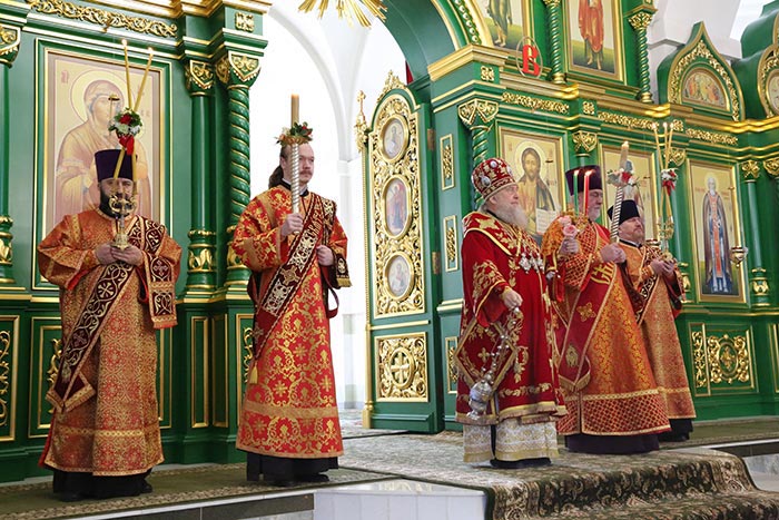 В завершение Литургии состоялось славление светлому Христову Воскресению и старцу Севастиану, после чего владыка произнес возглас «Христос воскресе!» на разных языках – древних и современных.