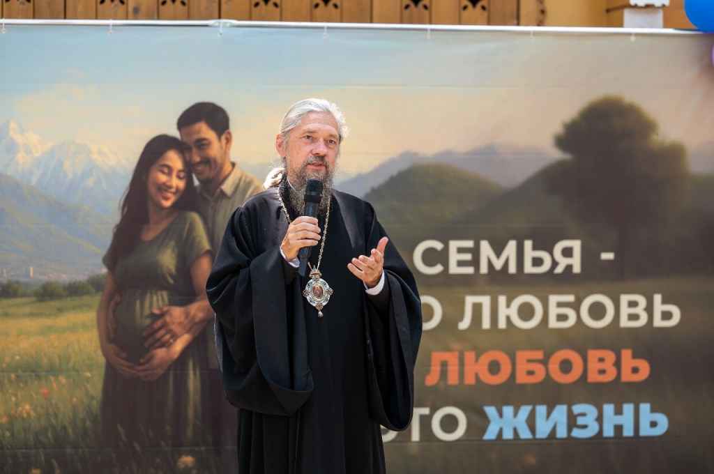 С приветствием выступил епископ Каскеленский Геннадий, викарий Астанайской епархии. Он передал слова благословения от митрополита Александра и напомнил о центральной роли семьи в христианском вероучении.