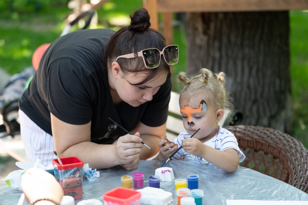 …а возле столов, где наносили аквагрим, и вовсе выстроилась длинная очередь: уж больно малышам хотелось примерить образы лисичек, котиков и супергероев.