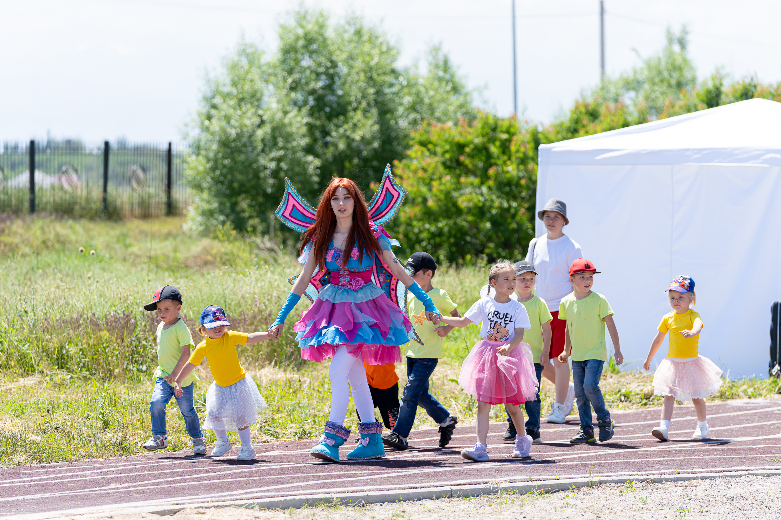 Для ребят из старшей группы подготовили игры на командообразование. Детям вместе с взрослыми предлагалось пройти на лыжах. Вот только подвох был даже не в том, что идти нужно было по покрытию стадиона в тридцатиградусную жару. Лыжи были «коллективными», и от согласованности действий всех участников зависело, как далеко продвинется команда. Этот принцип подростки уяснили не сразу, но к концу игры они даже обошли команду взрослых.
