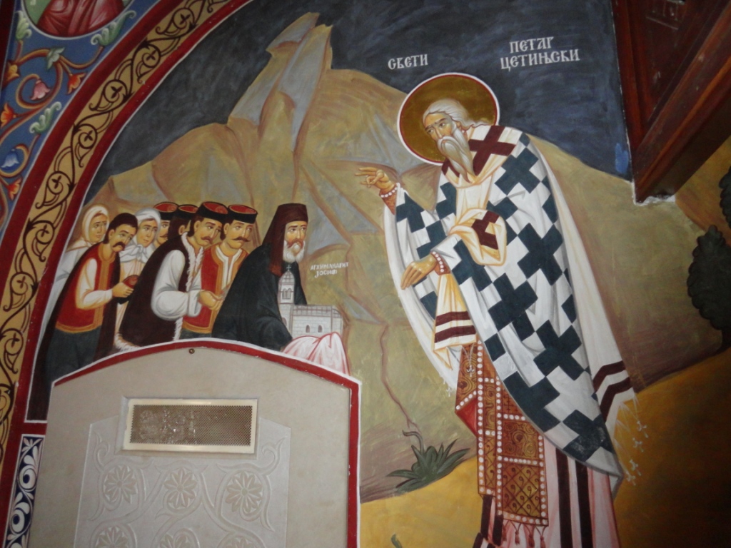 В первый же приезд мы познакомились с древним монастырем Морача XIII века и увидели старинную фреску св. Пророка Илии. Побывали в Цетинском монастыре, где хранится Десница св. Пророка и Предтечи Иоанна Крестителя, частица Животворящего Креста Господня и мощи св. Петра I Цетинского (Петровича Негуша). Мы узнали, что этот святой правитель и митрополит, которого народ называет Черногорский Петр Первый, заповедал своему народу хранить веру православную и любить Россию. В церкви Цетинского монастыря увидели икону недавно прославленного в лике святых св. митрополита Петра II Петровича Негоша − Цетинского пустынника и Ловченского тайновидца, удивительно талантливого человека, поэта и философа, узрившего тайны мира. Когда-то церковь на месте его захоронения снесли, и сейчас гробница находится в мавзолее на горе Ловчен. Многие века вера и дела черногорских правителей, их красота и духовная сила были неотделимы от жизни своего народа. Ведь они жили не ради себя.