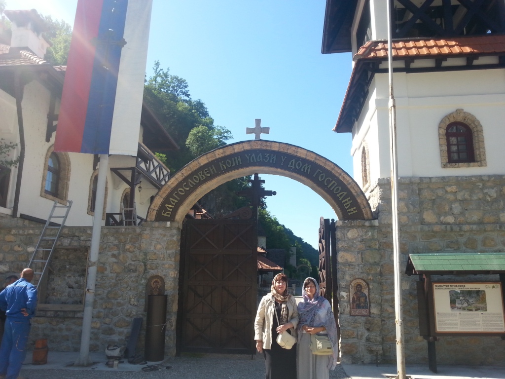 На черногорско-сербской границе нас доброжелательно встретили вывеской и словами «Добро дошли». Очень скоро мы оказались в первом сербском средневековом монастыре Куманица Милешевской епархии Сербской Православной Церкви. Этот древний монастырь начала XIV века расположен прямо в ущелье р. Лим, недалеко от железной дороги Белград – Бар. Над входной аркой надпись на сербском языке «Благословен каждый, кто входит в Дом Господень» отозвалась в душе радостью. Как, оказывается, много значат такие приветствия!