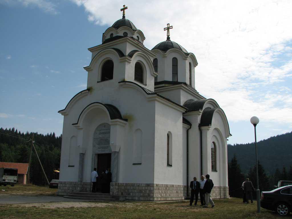 В дороге мы с удивлением узнали, что нелегкая судьба когда-то единого сербского народа-христоносца дала ему силы построить новый храм Сретения Господня не где-то, а прямо на пограничном переходе. Событие на возникших границах Сербии и Черногории оказалось весьма символическим, и храм освятили в честь Сретения Господня.