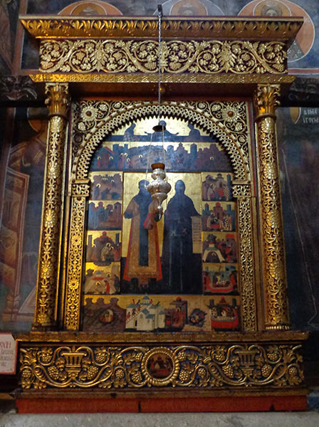 Особенно запомнилась уникальная и единственная в мире фреска святого Илии в пустыне на берегу реки Хорат, которого кормит ворон. Она находится на стене слева от входа. В XVI и XVII веках были созданы фрески «Семь Вселенских Соборов», «Лоза предков Христа» и монументальный «Страшный суд», некоторые из которых писал хиландарский монах Георгий Митрофанович. Я запомнила его имя, потому что так звали моего родного деда. К слову, Митрофанович − это фамилия у сербов, а у русских − отчество.