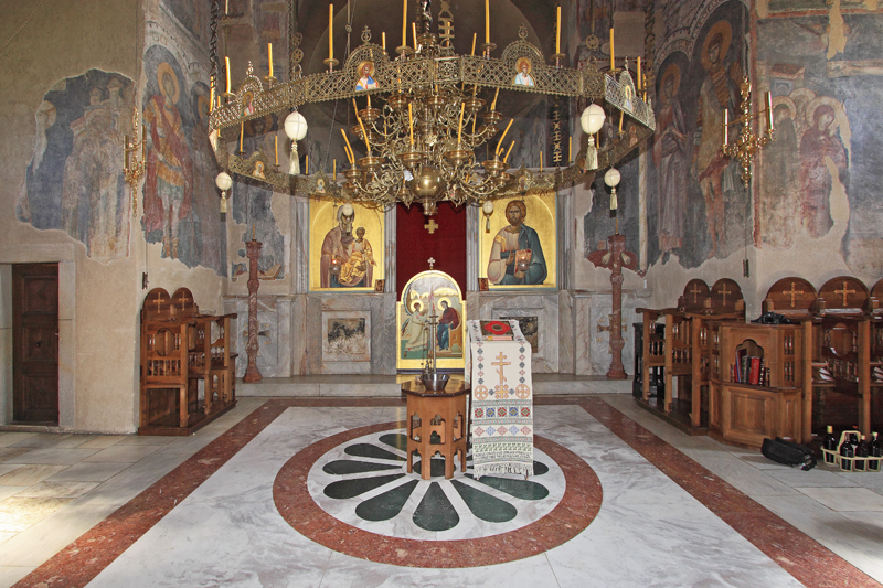 Согласно грамоте святого короля Стефана, которую до сих пор можно прочесть на стене у входа в храм, в Жиче находились частица Креста Господня, риза и пояс Богородицы, десница и часть честной главы Иоанна Предтечи, многочисленные мощи апостолов, пророков, мучеников, иконы, драгоценные сосуды. Многие реликвии были утеряны в пожарах набегов и войн. Иконостас в церкви изначально был каменным. Он не сохранился, но мы увидели новый мраморный иконостас, сделанный в 1994 году по его образцу.