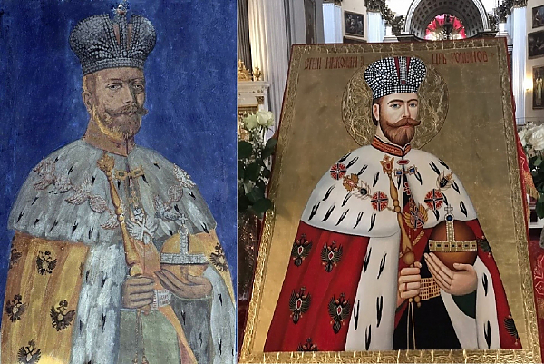 Сербы всегда почитали царя-мученика Николая и даже решились на иконописное изображение за многие десятилетия до официальной канонизации Русской Православной Церковью. Первые известия об обращениях верующих в Синод Сербской церкви с прошением о канонизации Николая II относятся к 1930 году. А в 1938 году царская семья была канонизирована Сербской Православной Церковью. Так образ русского царя-мученика картонными листами скрыли от коммунистической власти, когда вера и духовенство подвергались жестоким гонениям. И сохранили его для потомков.