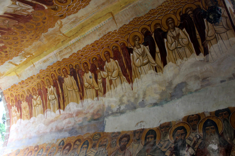 В главном храме до наших дней чудом сохранилась роспись 1220-1221 годов, которая является шедевром средневекового сербского искусства. На стенах изображены святой благоверный король Стефан и его старший сын Радослав. Более того, задача святого Саввы была связать сербскую церковь с первой апостольской Церковью – Сионской Горницей в Иерусалиме, «Матерью всех церквей», которую основал сам Спаситель. Как ему это удалось? В Жиче евангельские события были изображены в подкупольном пространстве, что наглядно уподобляло ее Сионской горнице и делало новую Сербскую Архиепископию достойной ее наследницей. Апостолы были изображены в нижнем ряду как основание Церкви и образец своим преемникам, сербским архиереям. До сих пор эти фрески сохранились частично или полностью и встретили нас на входе своим величественным строем.