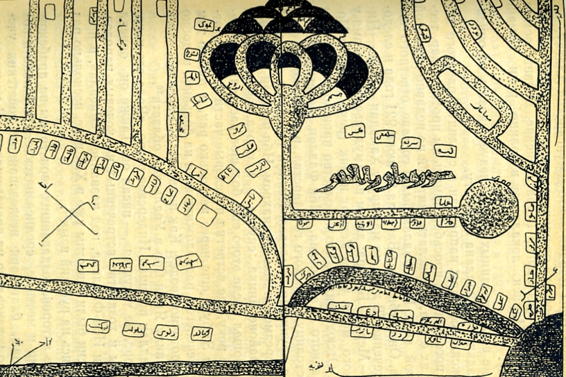На приведенной здесь арабской карте Ибн-Хаукаля изображена часть Аральского моря (черный кружок в правом нижнем углу) и впадающие в него реки Аму- и Сырдарья (карта ориентирована на юг). В те же времена, опираясь на «арабские сведения» и схемы, впервые Арал нанесли на свои карты и европейские картографы.