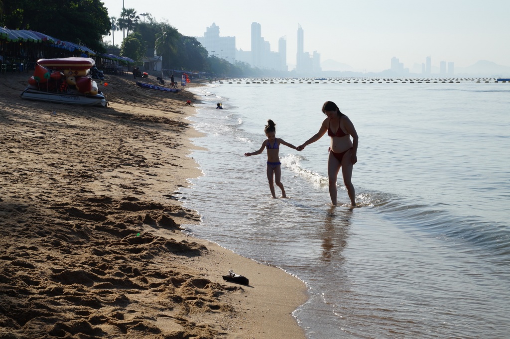 Для более полноценного пляжного отдыха более подходит южная часть города-курорта – Джамтьен. Длинная линия разномастных отелей, ресторанов, магазинов и баров, отделенная дорогой и пальмами от сплошной полосы пляжей и моря. Вода, правда, и тут несколько мутновата. Но гораздо чище, чем в самой Паттайе. И такая же теплая, как повсюду в Таиланде.