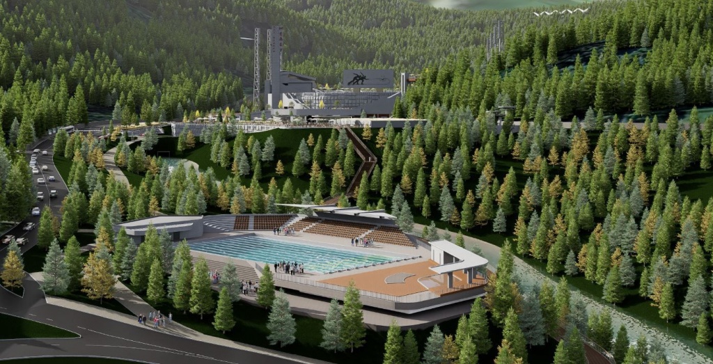 Особое внимание уделено созданию современных спортивно-оздоровительных условий. В районе старого машинного зала появится открытый бассейн размером 25 на 15 метров, с подогревом воды. Для комфорта посетителей предусмотрены трибуна и здание обслуживания, включающее ресепшн, раздевалки и все необходимые удобства. Новый бассейн станет круглогодичным местом притяжения для горожан и туристов, предлагая уникальную возможность плавать на свежем воздухе в живописной атмосфере гор.