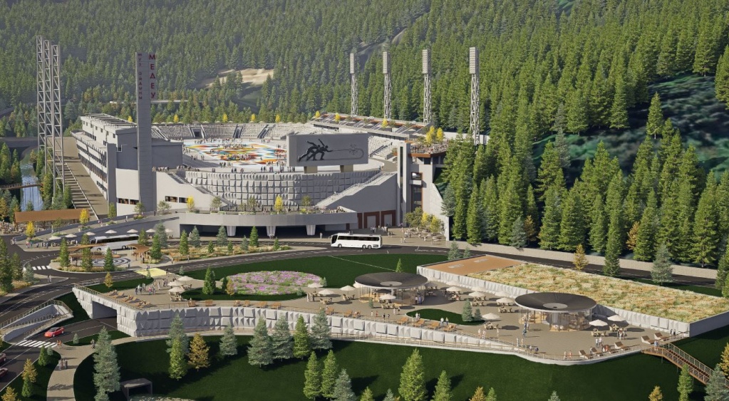 На прилегающей территории будет создан уникальный экопарк с маршрутами для прогулок, панорамными видами на искусственный водопад, реку Малая Алматинка и горы. Будут построены два новых пешеходных моста – восточный и западный, обеспечивающие удобное соединение между основными объектами комплекса и новыми зонами отдыха. При этом, судя по эскизам, парковочных мест для автомобилей вокруг комплекса станет еще меньше.