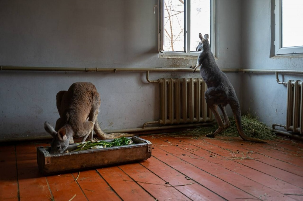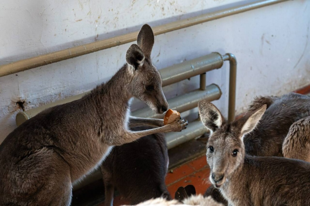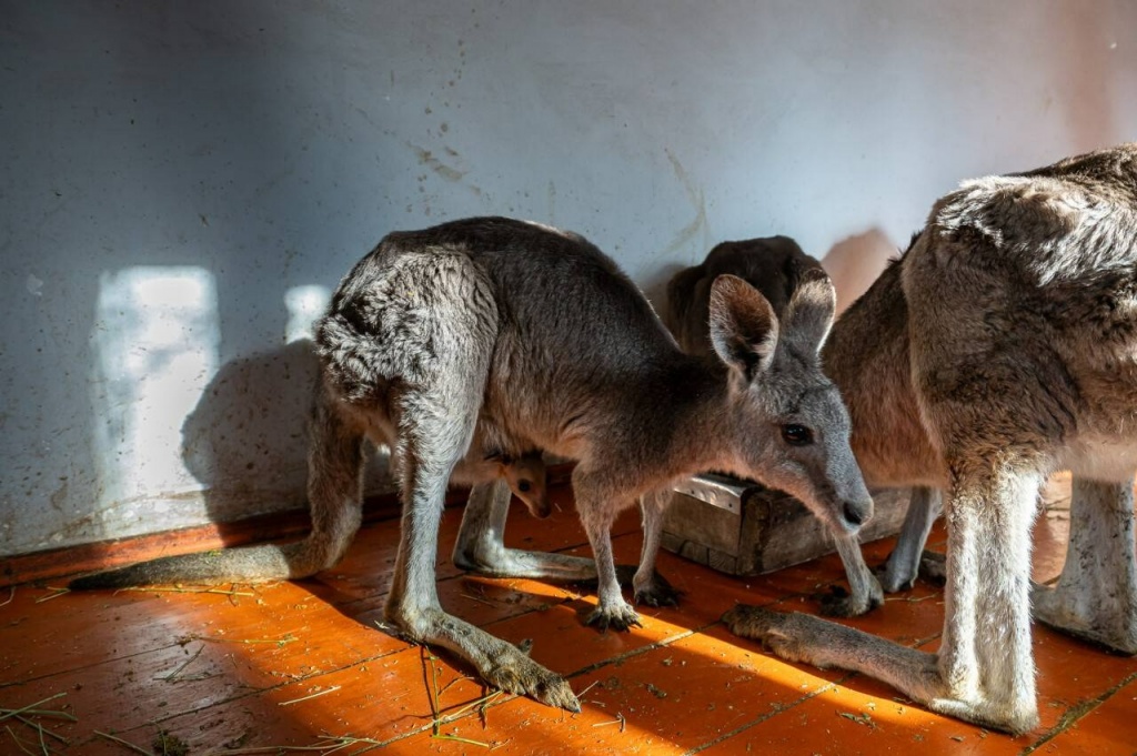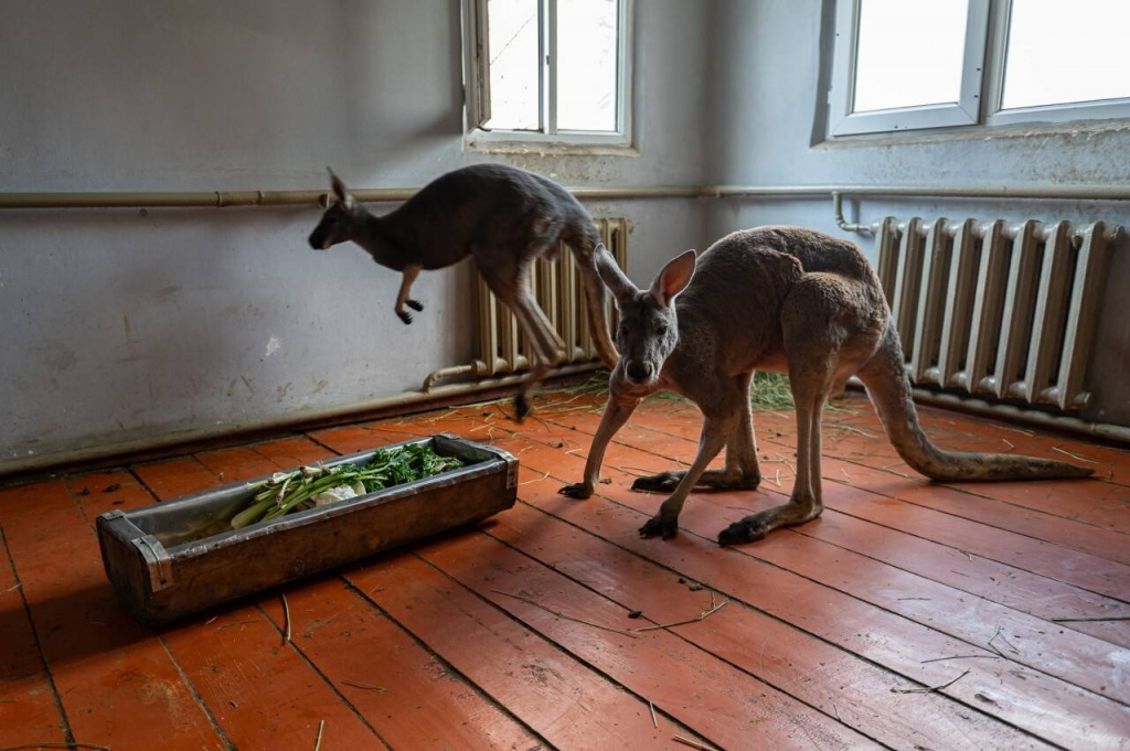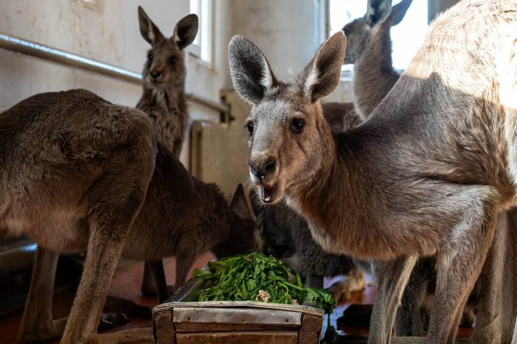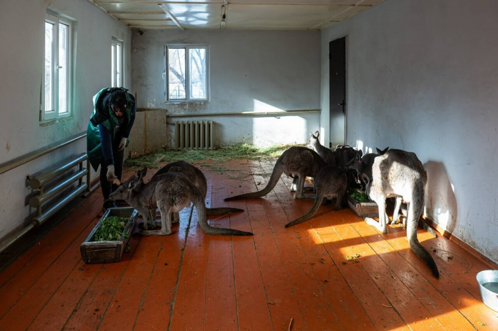 "Зимний рацион не сильно отличается от летнего. Допустим, летом даём им больше карагача, а сейчас веточки ивы. Кашу очень любят, картошку, свёклу, капусту. Помимо этого у них есть сено, и днём они постоянно что-то жуют. Всего здесь проживает 11 особей трёх видов: серые, рыжие и валлаби. Самый молодой родился недавно, он ещё не выходит и всё время в сумочке у мамы, показывается крайне редко. Самая взрослая особь – его мама, если не ошибаюсь, она 2016 года рождения. Нынешний кенгурёнок у неё уже четвёртый приплод", – рассказала Ольга.