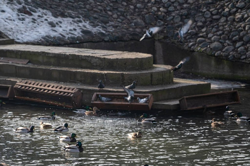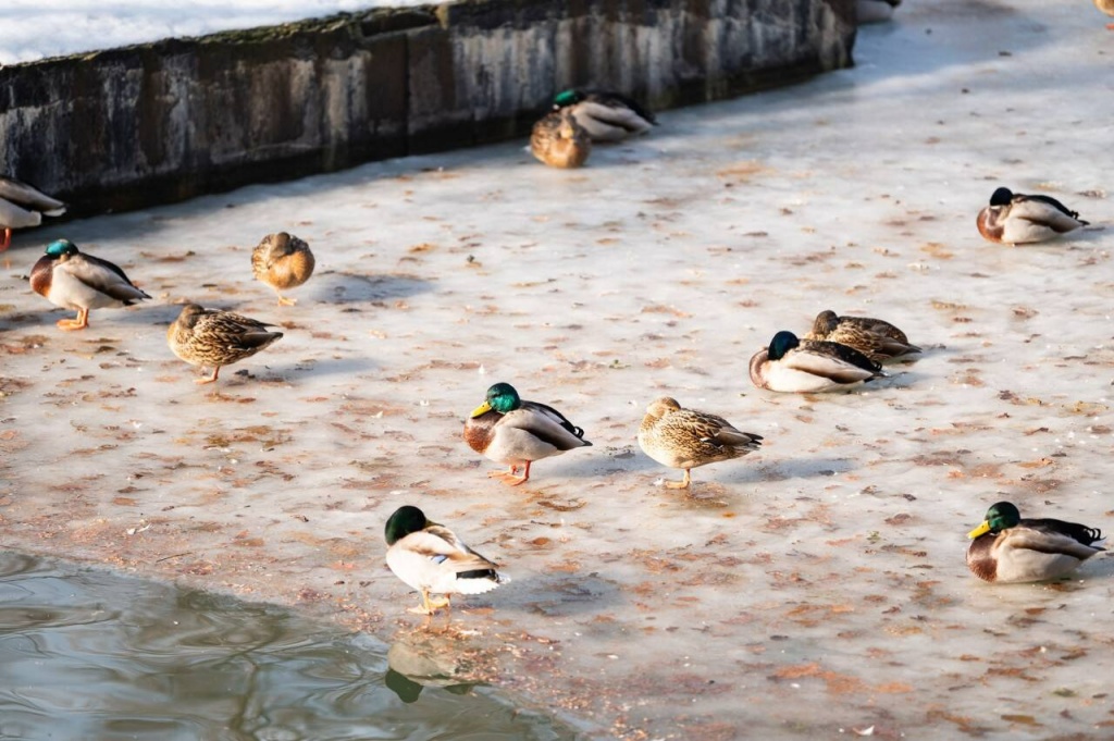 Помимо проживающих на озере лебедей, на зимовку в зоопарк слетаются утки и голуби со всего города. Здесь можно встретить любимцев многих горожан – уток-крякв.