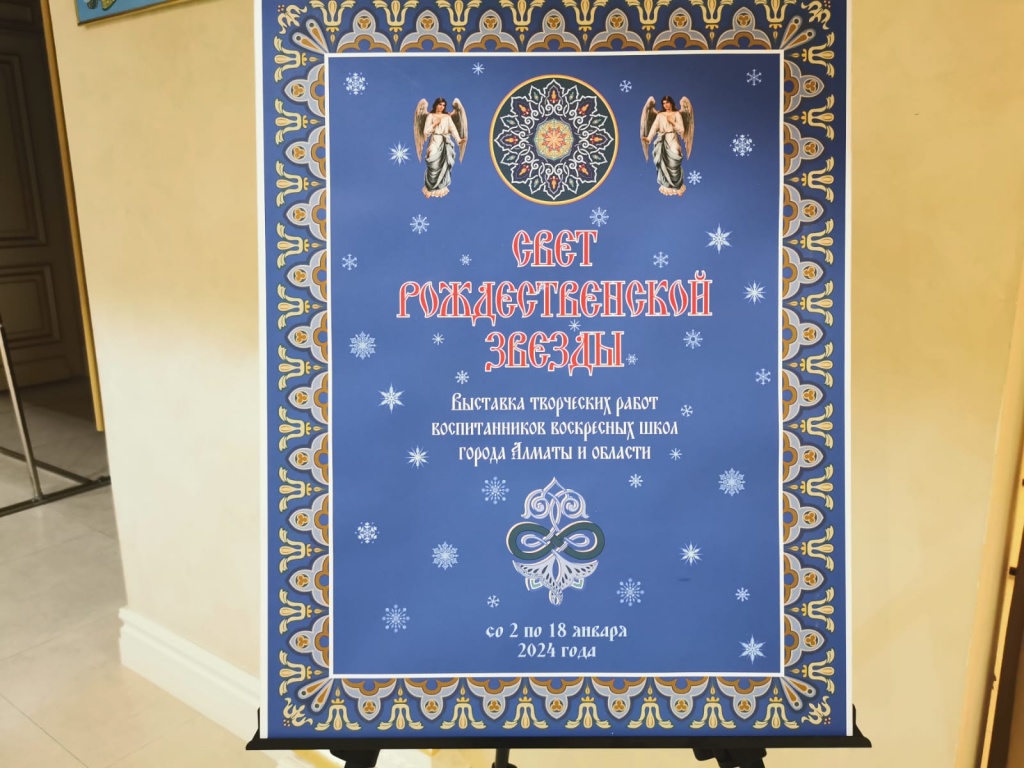 В канун Нового года также в Духовно-культурном центре Православной Церкви Казахстана готовится выставка творческих работ воспитанников воскресных школ Алматы и области «Свет Рождественской звезды». Рисунки и поделки детей можно будет увидеть в одном из залов Духовно-культурного центра со 2 по 18 января 2024 года.