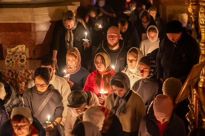 По окончании 9-й песни канона архипастырь преподал верующим благословение и обратился к прихожанам со словом проповеди.
